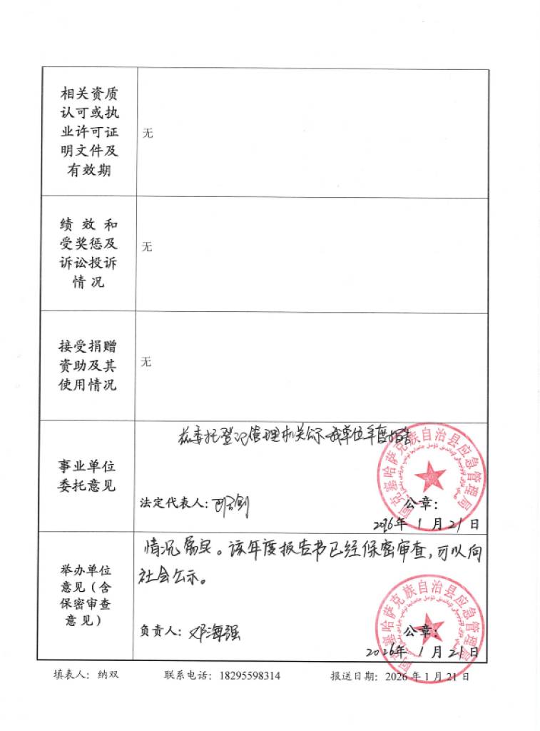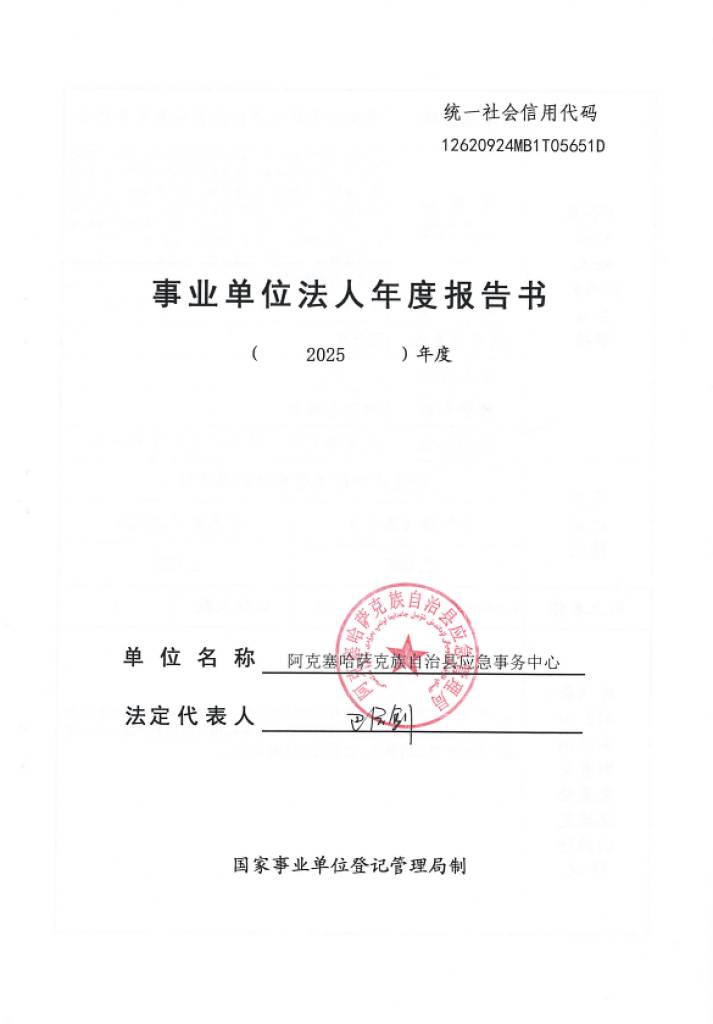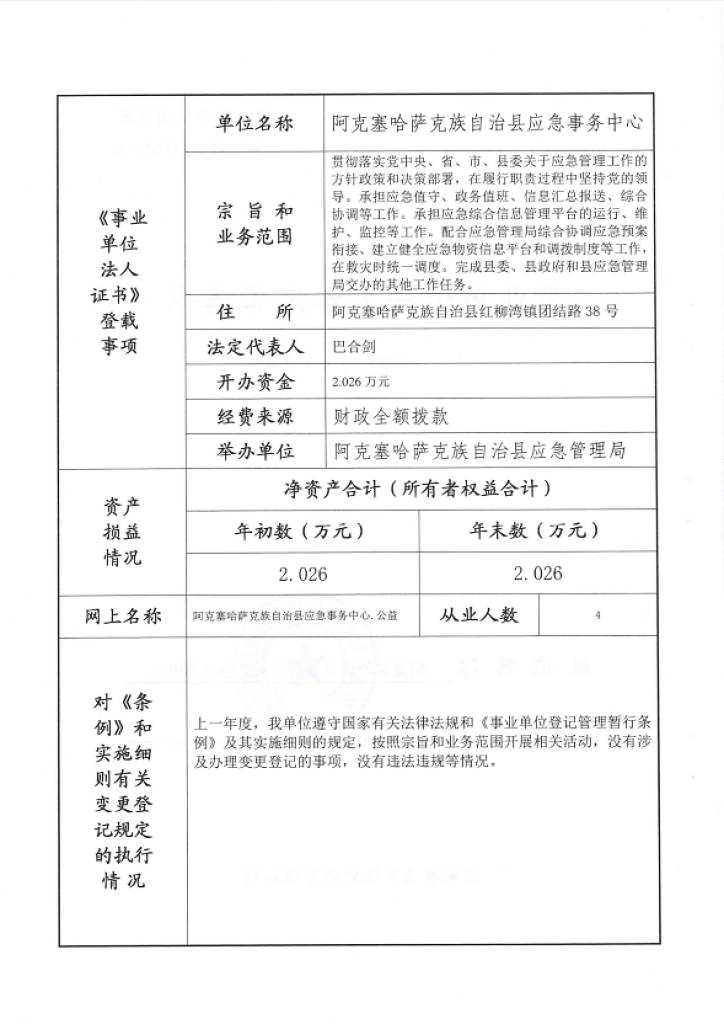 阿克塞县2025年度事业单位法人年报公示--阿克塞哈萨克族自治县应急事务中心