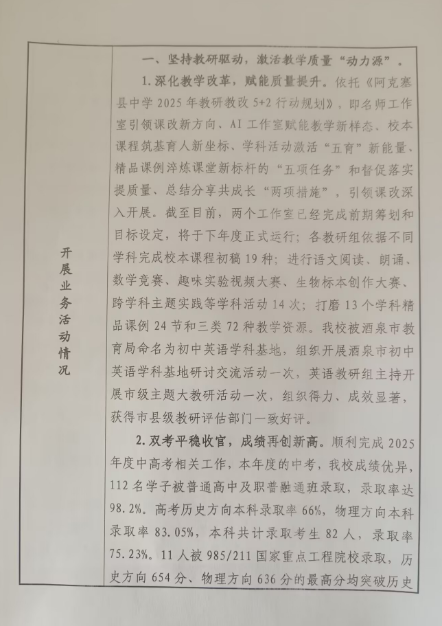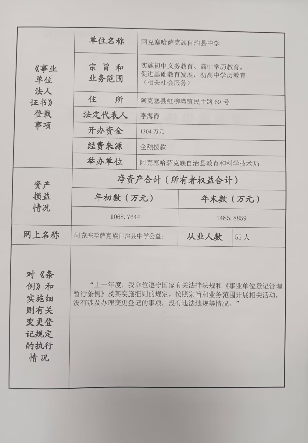 阿克塞县2025年度事业单位法人年报公示--阿克塞哈萨克族自治县中学