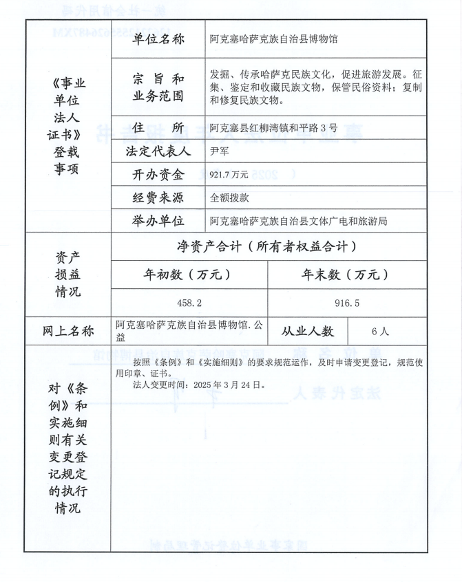 阿克塞县2025年度事业单位法人年报公示--阿克塞哈萨克族自治县博物馆