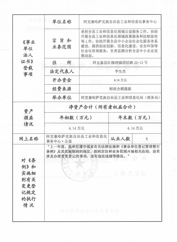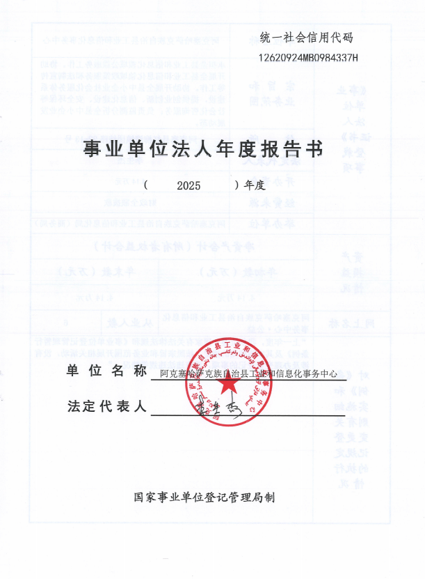 阿克塞县2025年度事业单位法人年报公示--阿克塞哈萨克族自治县工业和信息化事务中心