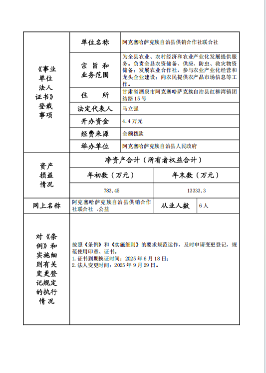 阿克塞县2025年度事业单位法人年报公示--阿克塞哈萨克族自治县供销合作社联合社