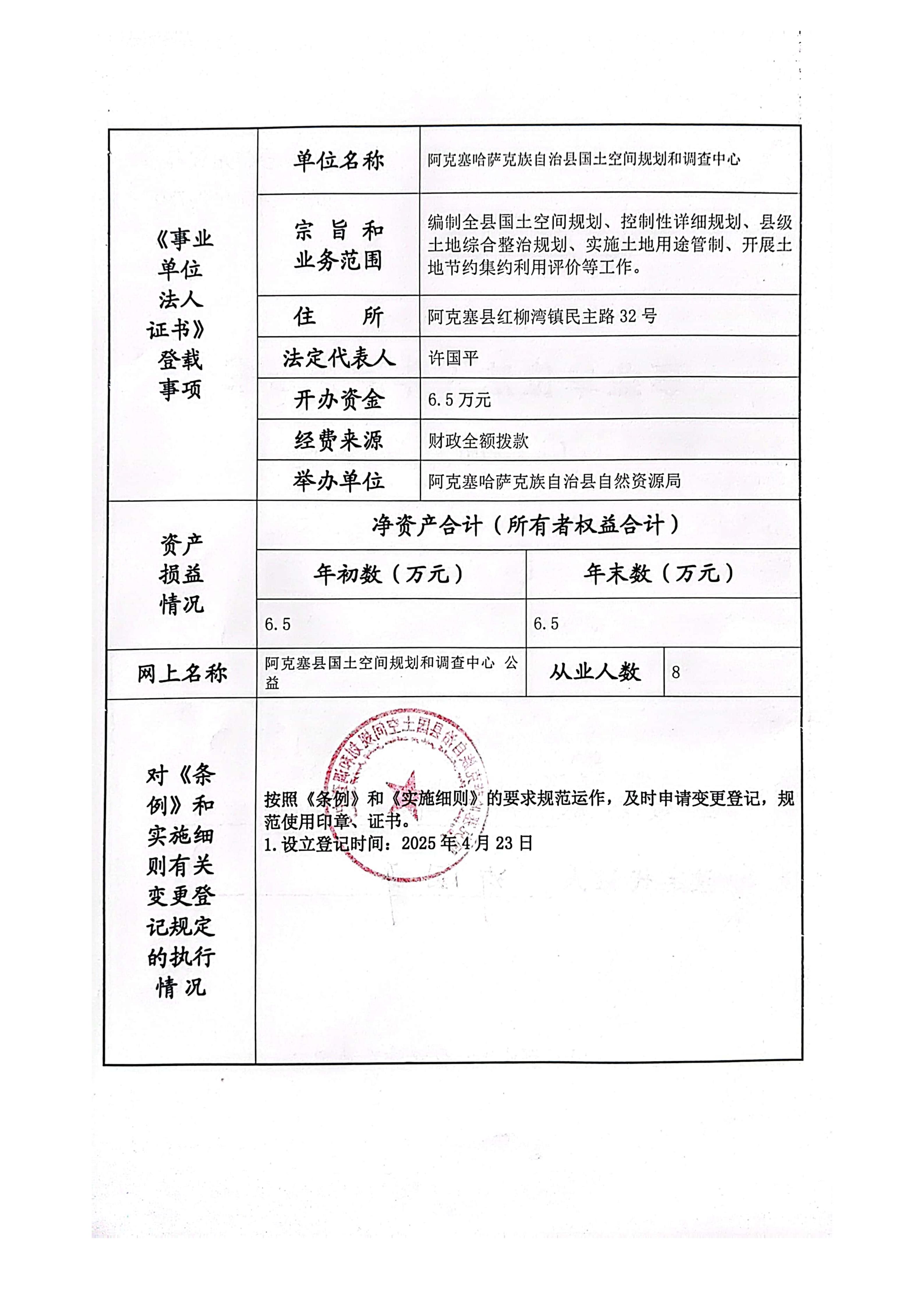 阿克塞县2025年度事业单位法人年报公示--阿克塞哈萨克族自治县国土空间规划和调查中心