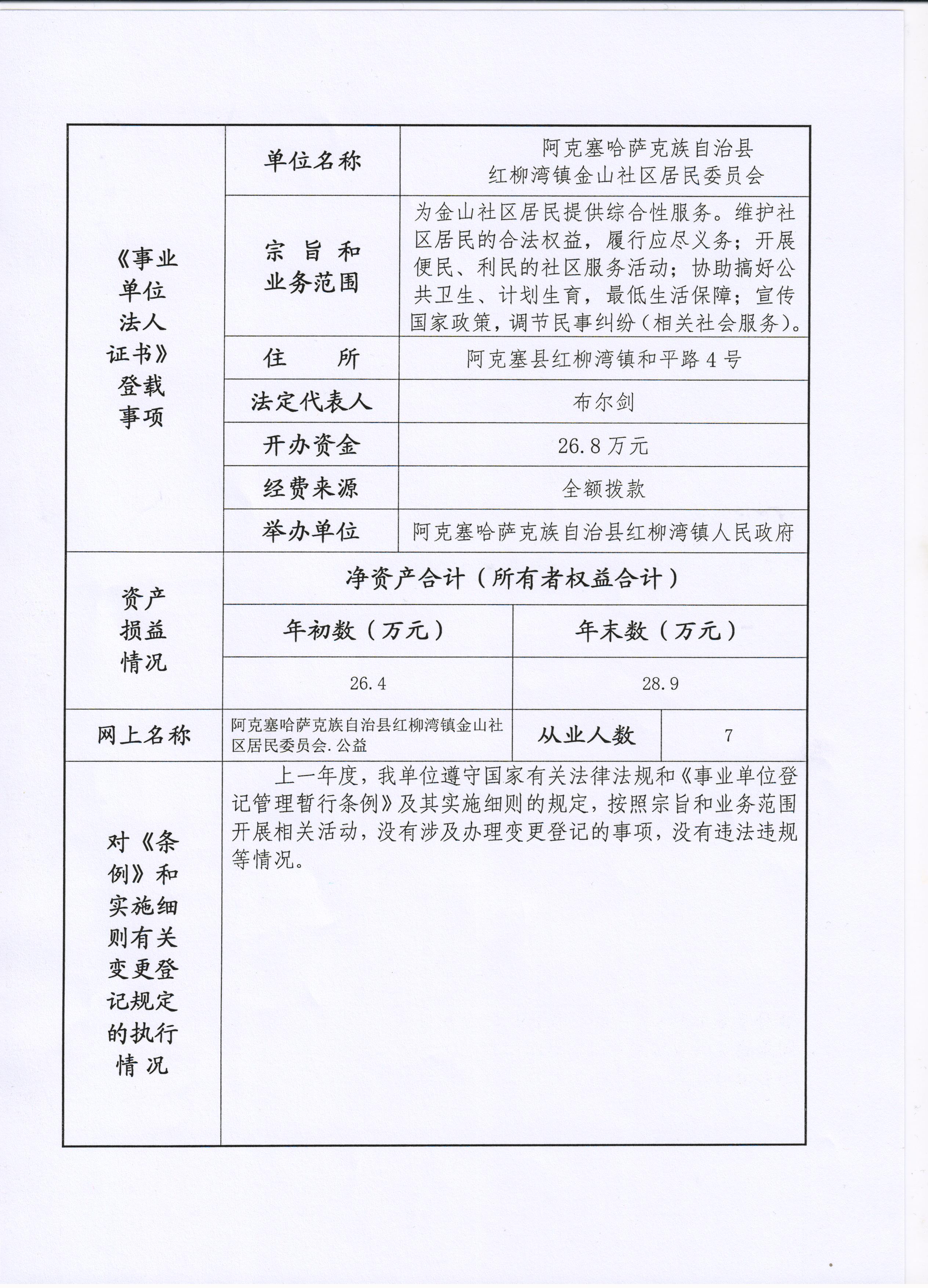 阿克塞县2025年度事业单位法人年报公示--阿克塞哈萨克族自治县红柳湾镇金山社区居民委员会