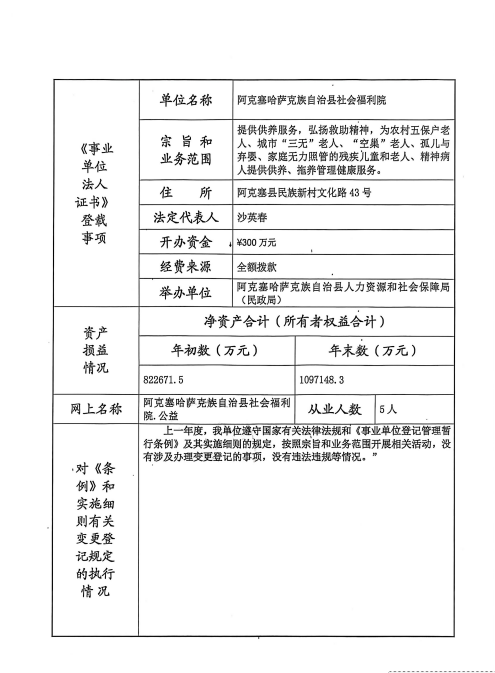 阿克塞县2025年度事业单位法人年报公示--阿克塞哈萨克族自治县社会福利院