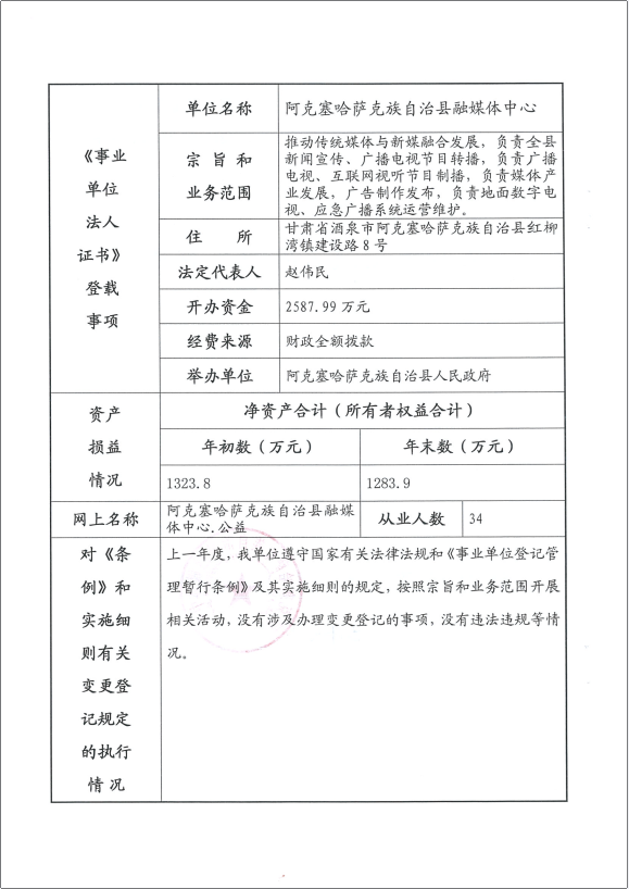 阿克塞县2025年度事业单位法人年报公示--阿克塞哈萨克族自治县融媒体中心