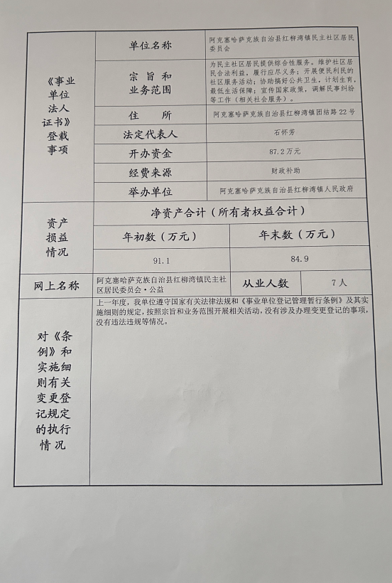 阿克塞县2025年度事业单位法人年报公示--阿克塞哈萨克族自治县红柳湾镇民主社区居民委员会