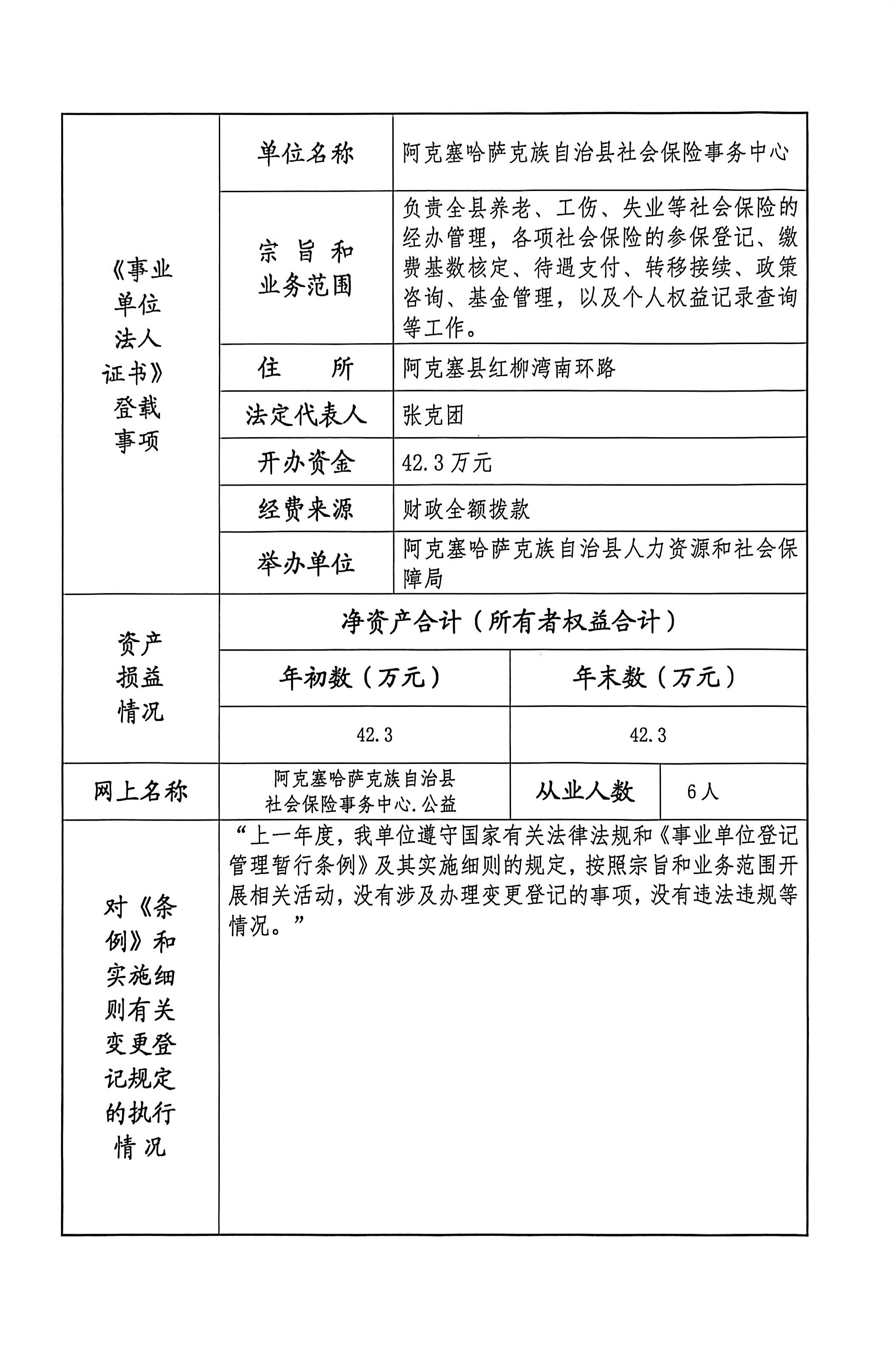 阿克塞县2025年度事业单位法人年报公示--阿克塞哈萨克族自治县社会保险事务中心